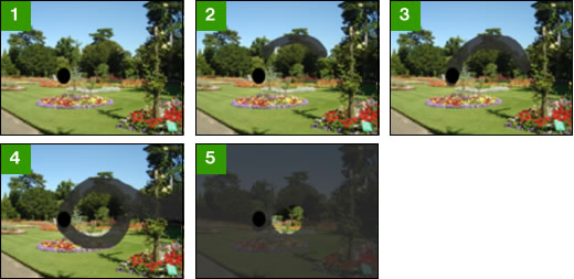 病気の進行と共に,視野の中心部を迂回する形(A→D)で,見えない範囲が広がってゆく。